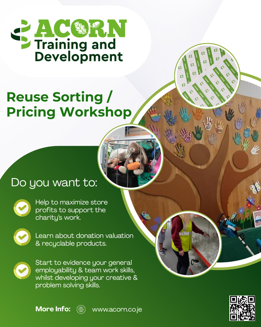 Our Reuse shop is a really important part of Acorn as all the money generated from selling donated items is put back into Acorn to help provide ongoing training opportunities for our clients.
